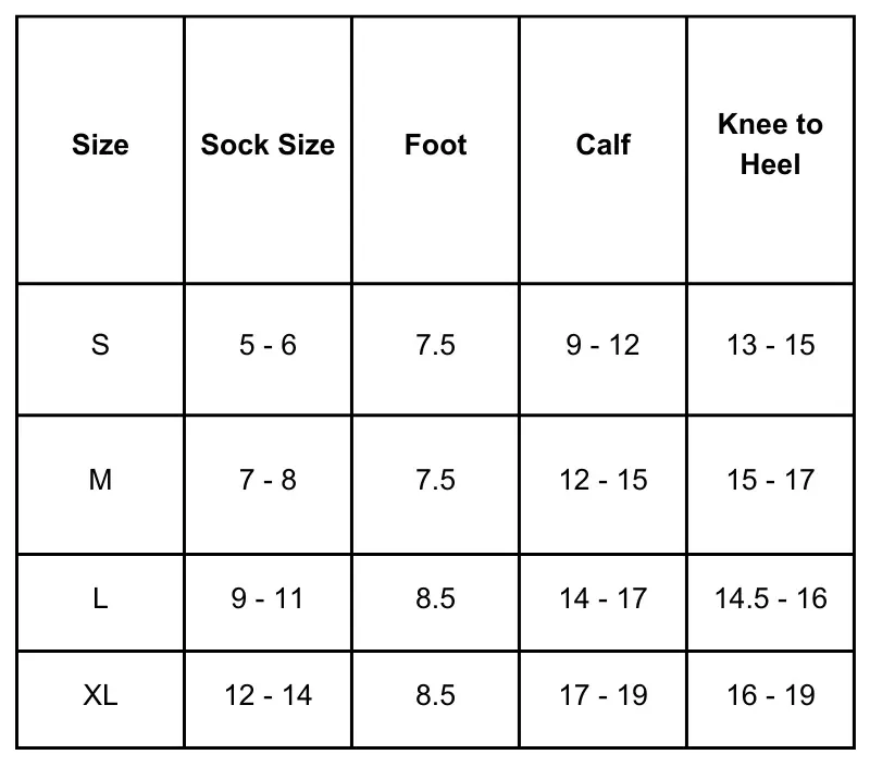 Note: If between sizes, we recommend sizing up for comfort. The socks should feel snug but not restrictive.
