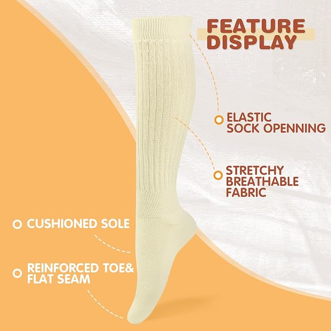 Introducing the Slouch Socks for Women with Extra Long Knit Design, a staple for cold-weather outfits, dance wardrobes, themed attire, or casual loungewear layering. With a full-length build measuring approximately 15.7 inches from top to base, these socks offer a distinctive texture and silhouette that enhance vintage styling or everyday layering choices.